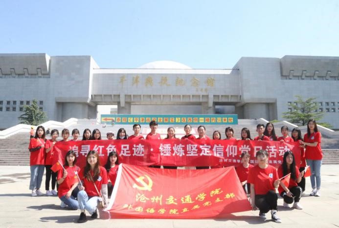为热烈庆祝中国共产党成立100周年,重温党的光辉历程,传承革命先辈的光荣传统。我校外国语学院直属党支部于5月30日赴天津开展以“追寻红色足迹•锤炼坚定信仰”为主题的党日活动。我校外国语学院直属党支部书记张丽、副书记周志慧、组织委员张忠铭出席本次活动,部分党员师生代表及入党积极分子参会。